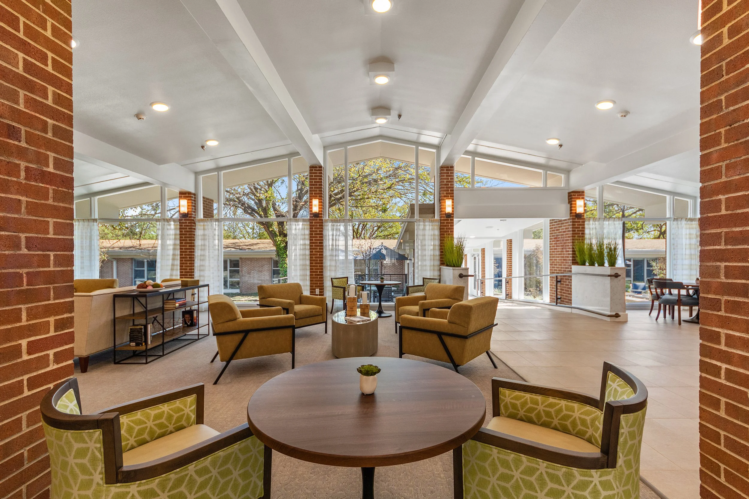 It’s alive! Environments that feel alive and connected to the environment can be both energizing and calming for residents. For instance, biophilic elements such as live plants, fountains, stone fireplaces, and courtyards with lush foliage bring the beauty and life of the outdoors. Design elements such as wood grains and tones also bring a natural feel to a space. Shepard noted that gray floors, walls, and countertops have been popular in recent years, but overuse of gray can be bland and unnatural. “If you have to use gray or have gray design elements already, it may be possible to add an undercurrent of warmth or balance the gray with splashes of color,” she said.